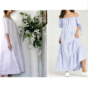 I want to tell you how I make perfectly spaced gathers. It is not difficult to gather short distances. But what if you have a dress with gathered tiers like this French country dress featured on the site? The gathered edge is not THAT much longer than the shorter piece to join to. So there ends up being a flat space or too much fabric in some area. My way may take a bit longer at the front end BUT at least you don’t have to keep doing it over and over again ’til the gathers “work”. And after all, we would rather it look great in the end than how quickly we can complete our art. Here is the elastic method of gathering that I use:
